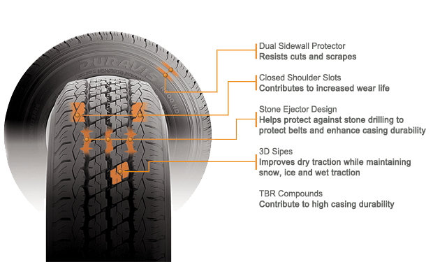 Add any of these similar tires to compare to the Bridgestone Duravis R500 HD